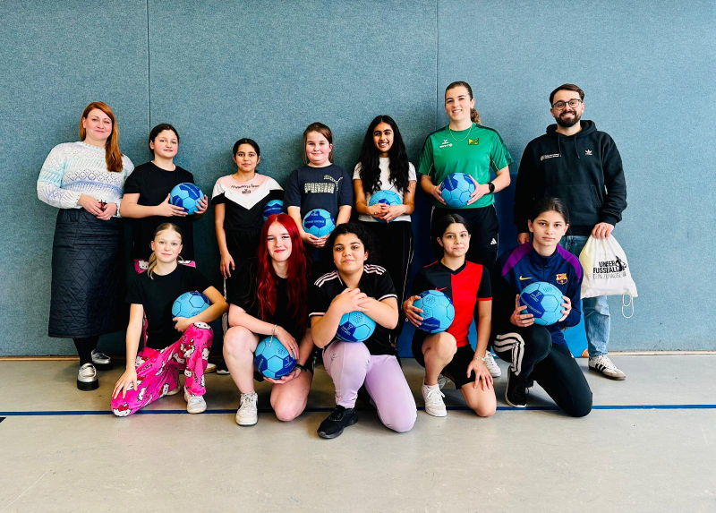 Im Rahmen der Kampagne "Unser Fussball, dein Zuhause" des Fußballverbandes Sachsen-Anhalt, können wir unseren Schülerinnen ein neues Bewegungsangebot anbieten. In Kooperation mit dem SSV Besiegdas 03 Magdeburg, werden die Schülerinnen einmal in der Woche gegen den Ball treten und sich stetig weiterentwickeln. Durch unsere guten Voraussetzungen mit einer Turnhalle und dem vorhandenen Kunstrasenplatz können die Mädchen im Sommer als auch im Winter optimal trainieren.